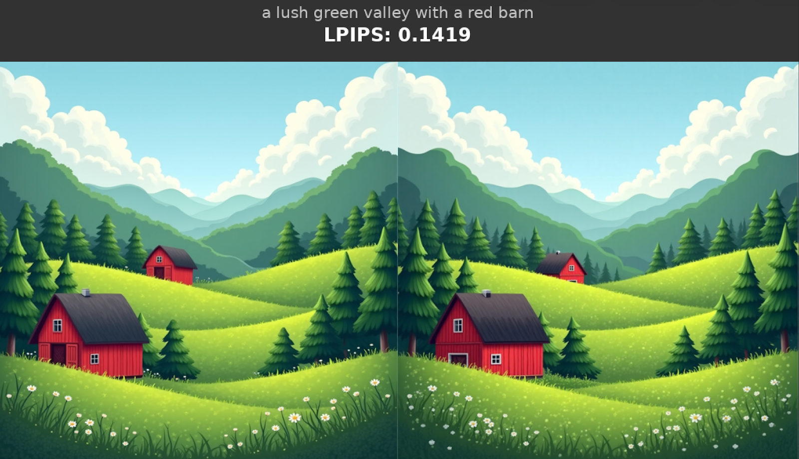 An LPIPS score of zero means “identical images”, and lower LPIPS scores correspond to higher perceptual similarity.  The code we used to compute the mean LPIPS score is here.  Please see the LPIPS section further in this post for more details on accuracy evaluations with LPIPS.