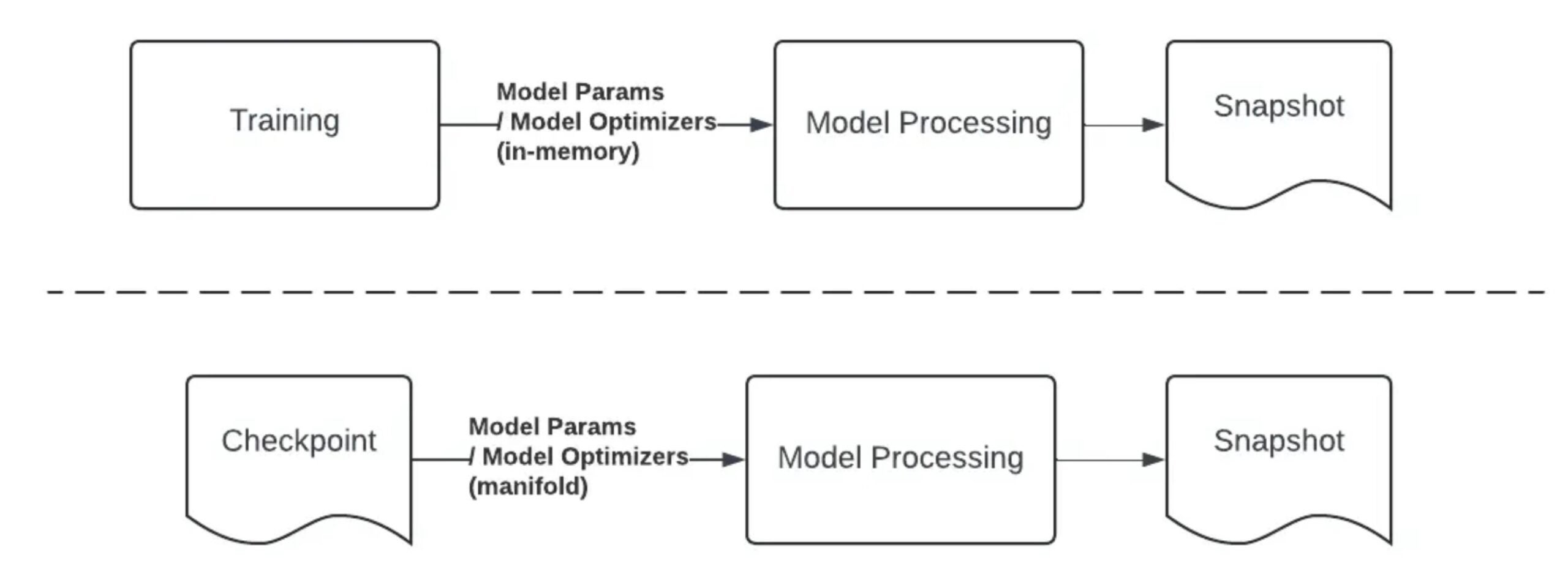 The team’s analysis led to the adoption of a standalone publishing strategy, which decouples publishing from the training process. With this approach, publishing is initiated only after the training job has finished and created an anchor checkpoint. This checkpoint is then used by a model processing job, leveraging the stored data, to generate the final inference-ready snapshot.