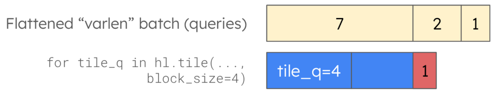 Figure 2: Accessing the flattened “varlen” tensor with fixed tile sizes requires manual masking.